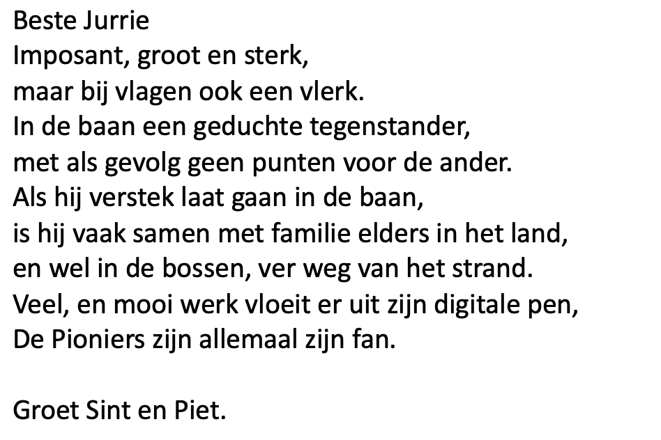 Vrijwilligersdag 28 november 2025 (aanvulling 1) – Sint was kennelijk nog niet helemaal ‘uitgedicht’ en stuurde mij de volgende gedichten toe: