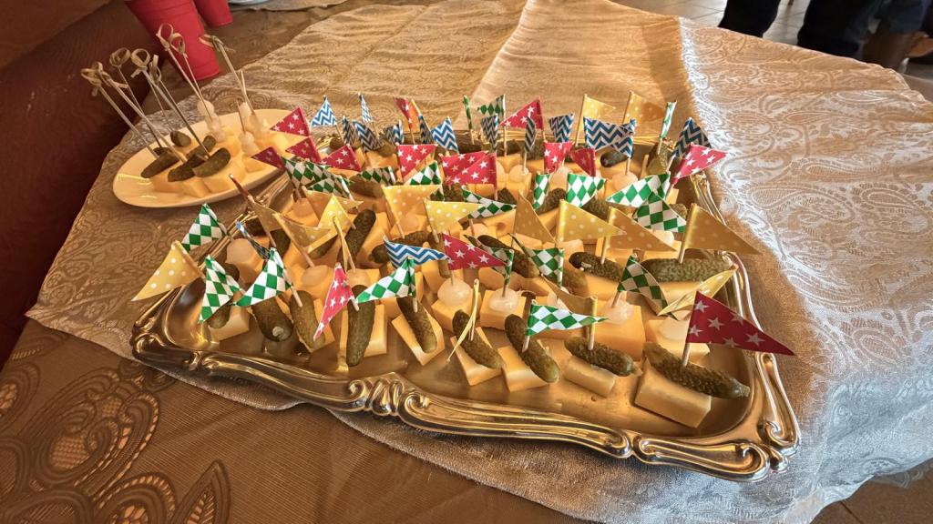Het eten (met een Spaanse touch) was prima. Er was een buffet met voorgerechten en hoofdgerechten. Dat het de bedoeling was om eerst een voorgerecht te nuttigen en daarna het hoofdgerecht werd niet door iedereen geëerbiedigd. Maar wat maakte het uit: voor- en nagerecht door elkaar?
