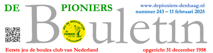 Jeu de Boules Vereniging ‘De Pioniers’ is opgericht in 1958. Het is de oudste Jeu de Boule Vereniging in Nederland en telt maximaal 50 mannelijke leden. Wij spelen niet in competitieverband, maar uitsluitend onder elkaar en voor ons plezier.
